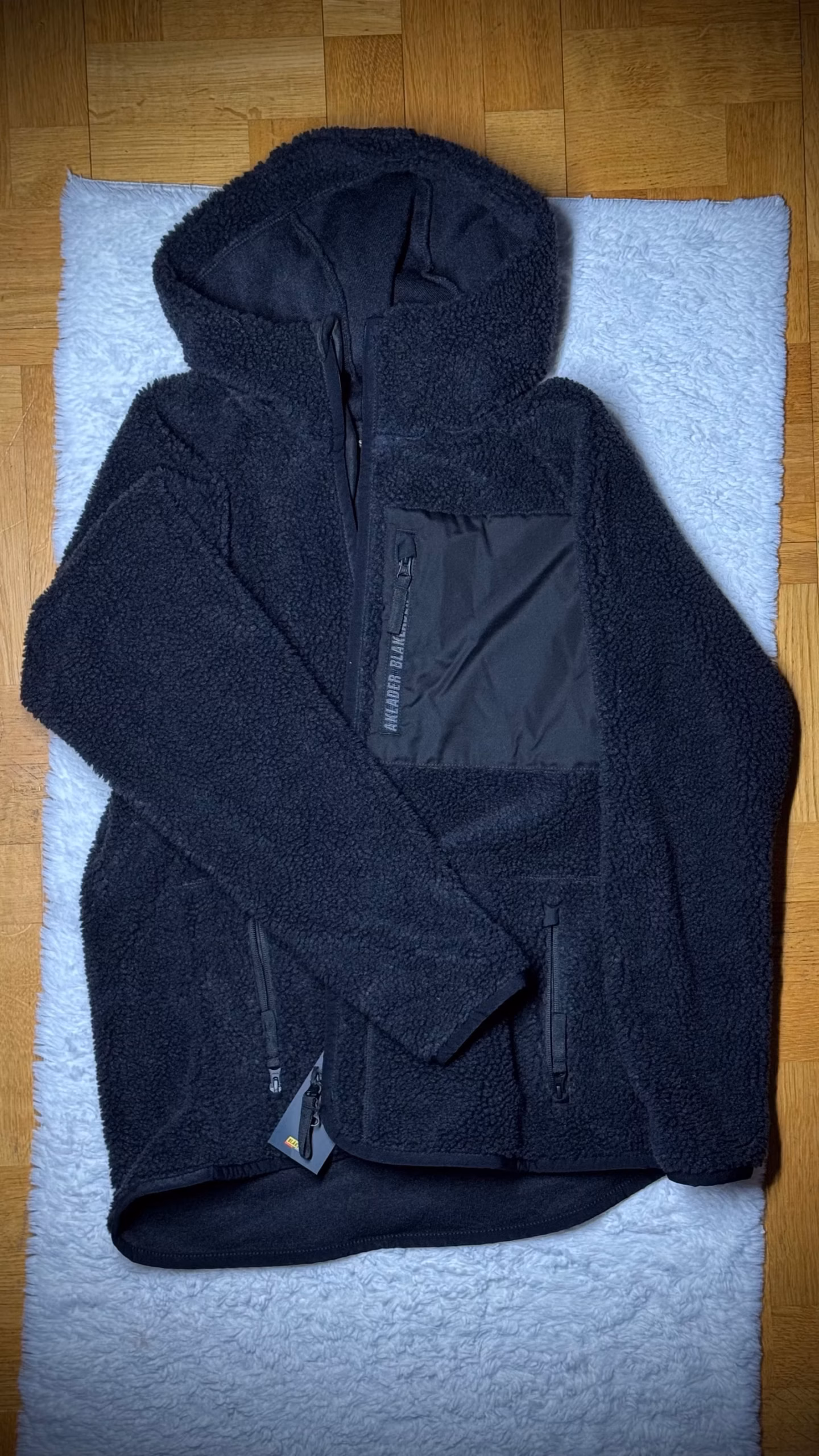 huppari, musta. Edessä vetoketju ja vetoketjullisia taskuja. Rinnassa kangasvahvike ja vetoketjutasku. Hupullinen malli, sopii arkeen ja ulkoiluun.