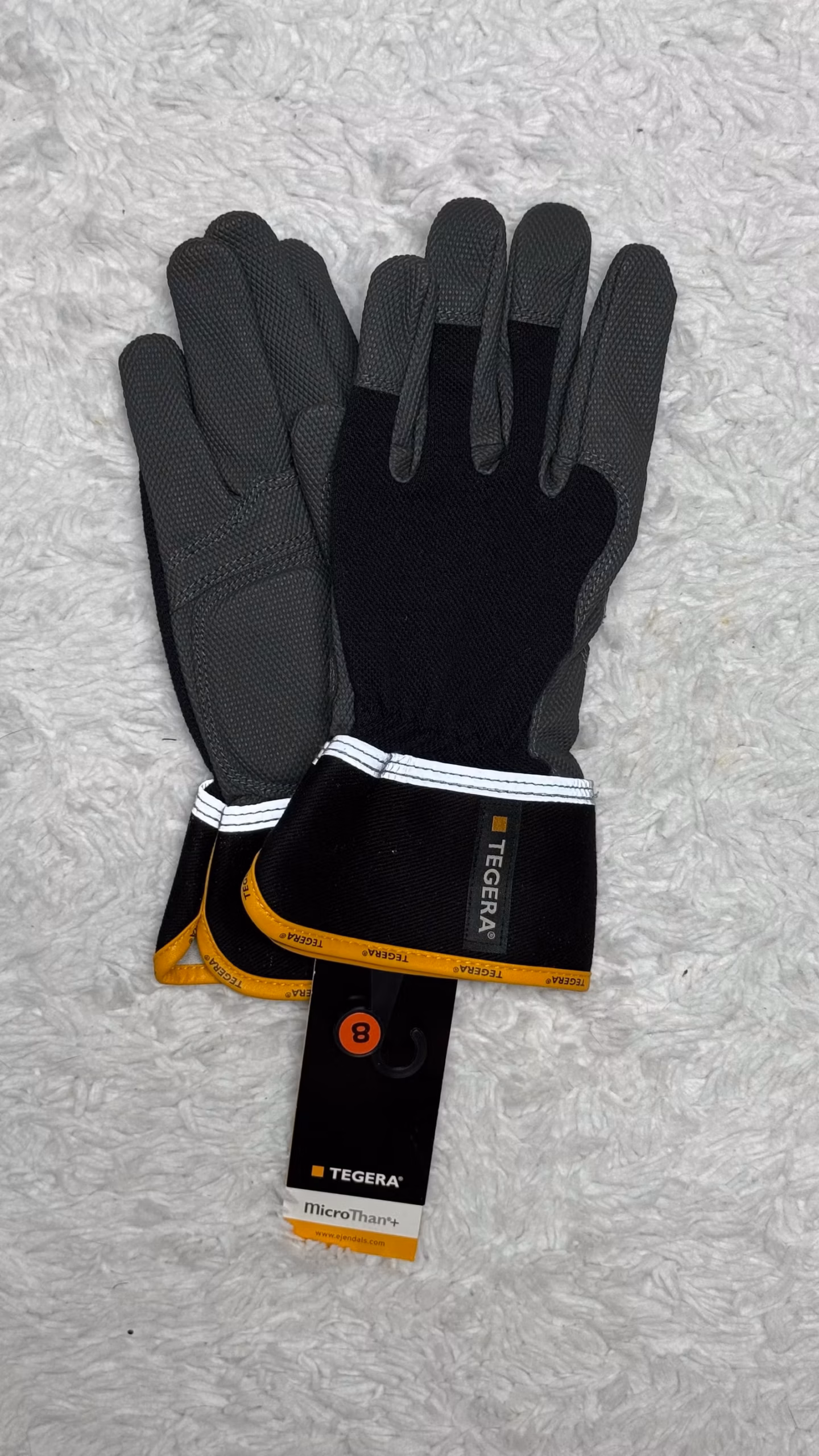 Tegera työkäsineet. Käsineet soveltuvat yleisiin työtehtäviin ja askareisiin, joissa tarvitaan käden suojaa ja hyvää sormituntumaa.